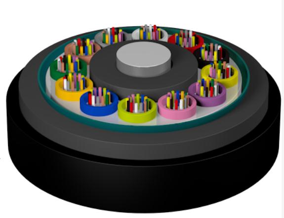 GYTS 光纜的結(jié)構(gòu)是將 250μm 光纖套入高模量材料制成的松套管中,松套管內(nèi)填充防水化合物。纜芯的中心是一根金屬加強(qiáng)芯,對(duì)于某些芯數(shù)的光纜來說,金屬加強(qiáng)芯外還需擠上一層聚乙烯(PE)。松套管(和填充繩)圍繞中心加強(qiáng)芯絞合成緊湊和圓形的纜芯,纜芯內(nèi)的縫隙充以阻水填充物。雙面涂塑鋼帶(PSP)縱包后擠制聚乙烯護(hù)套成纜。